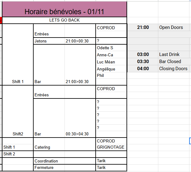 Bonjour à tous, Nous avons encore besoin de vous *ce samedi 1er novembre* pour le *second shift bar* ???? C’est l’une des fameuses soirées *SMELLS LIKE 90’S* de *Stefke* ???? Le dancefloor va chauffer ???? ! Si tu es dispo et prêt pour cette *ambiance de folie*, ne manque pas de *nous faire signe à Anne-Lise et à moi* ???? On t'attend nombreux ! *Merci ????* Elodie